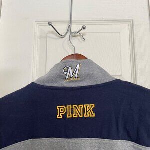 PINK Victorias Secret Womens Gray 1/4 Zip Baseball Brewers MLB Sweatshirt Medium