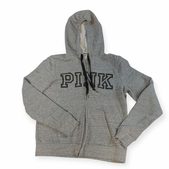 PINK Victoria’s Secret Women’s Gray Long Sleeve Full-Zip Hoodie Size Medium