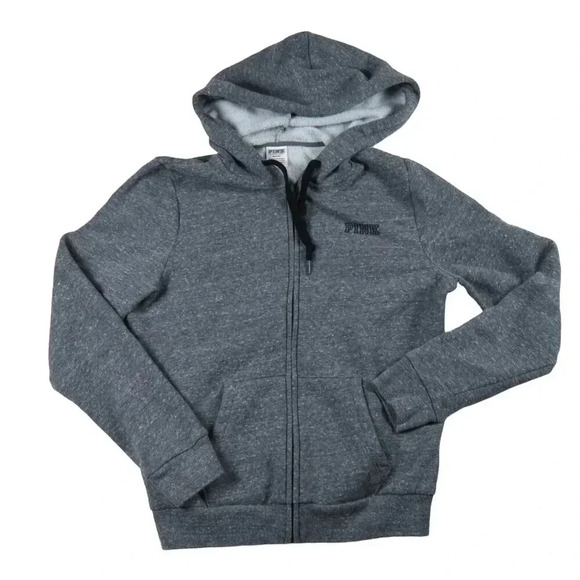 PINK Victoria's Secret Women's Grey Full Zip Hoodie Size Medium Love Pink
