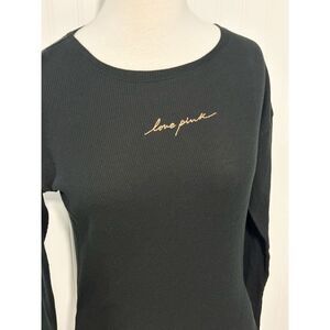 PINK Victoria's Secret Women's Love Pink Thermal Knitted Top Black Size XS