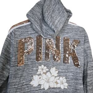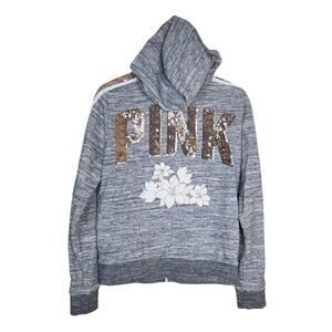 PINK Victoria's Secret Women's M Gray Sequined Zip Front Hoodie Jacket