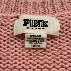 Cozy and cute pink chunky knit sweater by PINK Victoria’s Secret. Features a deep V-neckline, soft thick knit fabric, and relaxed fit — perfect for layering, lounging, or pairing with jeans for an effortless everyday look.