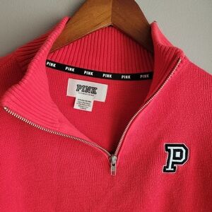 PINK Victoria's Secret Women's Sweater 1/4 Zip Coral Colod Size S/P Long Sleeve
