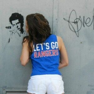 Light, breathable, classic, blue tank top with the Texas Rangers baseball graphics on front and "LET'S GO RANGERS" on the back. 3 buttons in front down neckline. It goes great over sports bras or bandeau style tops. Size XS.