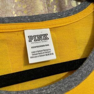 PINK Victorias Secret Yellow White Gray Logo 3/4 Sleeve Top, XS