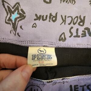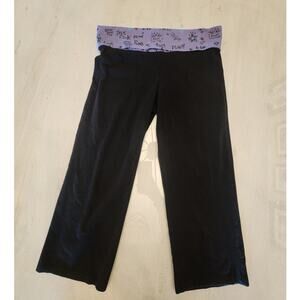 Pink Victoria's Secret Yoga Pants. Size Small. Fold Over Waist. Cropped. Wide Leg. Graphic Print. Two tiny white marks on butt. In good preowned condition. Smoke Free Home.