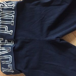13” across waist 33” inseam Well loved stretchy soft yoga pant with"LOVE PINK" on the waist band, hems and seams are in good condition, there's still a lot of life in these pants