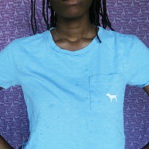 PINK Victoria's Secret cropped t-shirt with dog on front pocket in baby blue in size small.