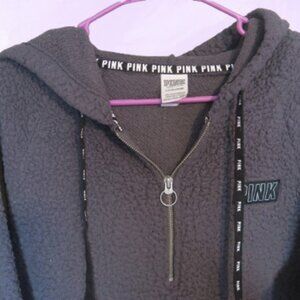 PINK Victoria's Secret fleece hoodie quarter zip sweater in gray, black silver S