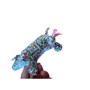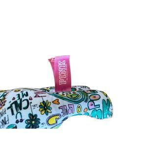 PINK Victoria’s Secret graffiti dog plush doodle drawings colorful 8.5”x6” GUC.