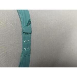 Turquoise floral lace overlay; adjustable shoulder straps; double hook and eye back closure