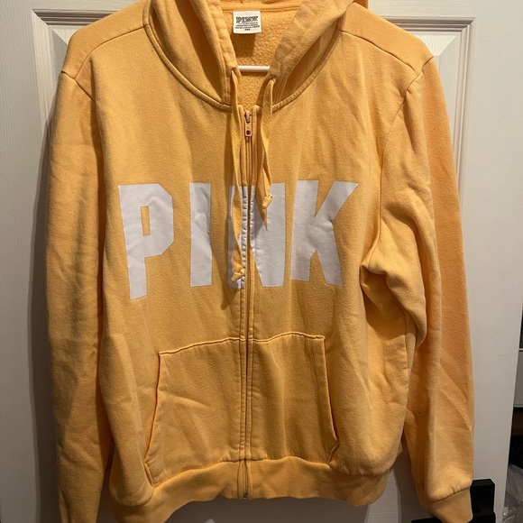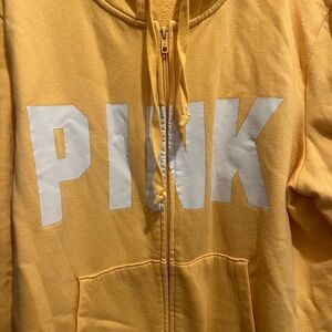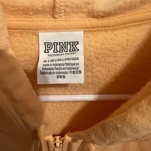 Soft tangerine fleece jacket. Iconic PINK logo. Ideal for everyday comfort.