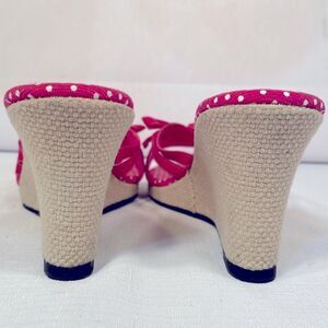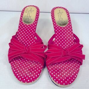 PINK WITH WHITE POLKA DOTS 3” WEDGE HEEL SLIP ON SIZE 8 BY SOFT STYLE