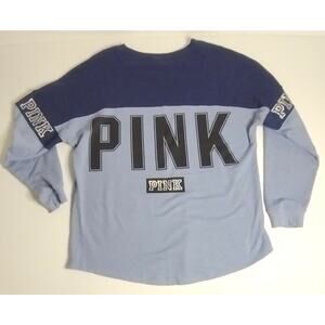 PINK Women’s Top Size Large Blue Colorblock Long Sleeve Pullover Round Neck Logo