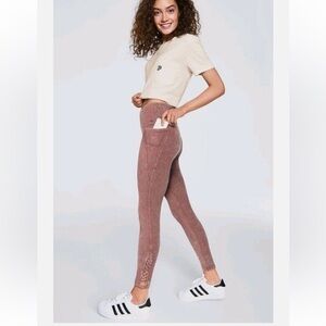 PINK YOGA HIGH WAIST COTTON STRAPPY 7/8 ANKLE LEGGINGS