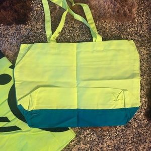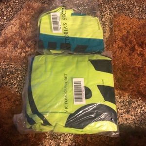 brand new Victoria’s Secret pink bundle neon green and neon teal tote bag and beech towel.