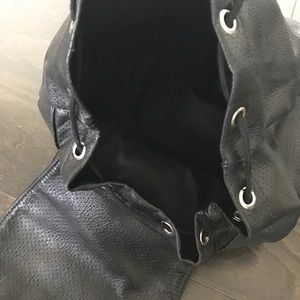 this is a beautiful bag made by the company of Pink. it's leather and looks new. it's stylish and quite roomy. has two pockets on the side of the bag and straps are adjustable