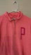 Hot pinkish orange pullover with front pockets and 1/4 zip