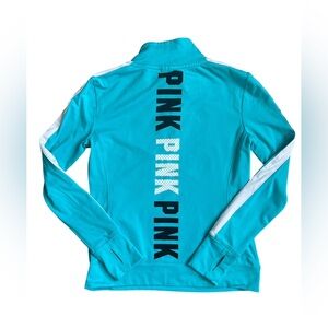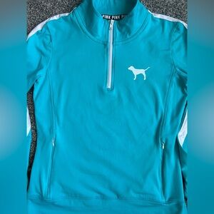 PINK by Victoria’s Secret Aqua, white and black quarter zip pullover with thumb holes and two front zippered pockets.