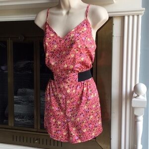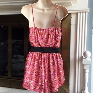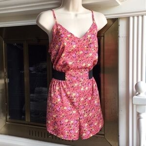 PINK floral romper adjustable straps shorts Sz Sm