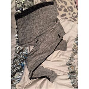 PINK grey stripe cozy knit joggers pants pajamas lounge small