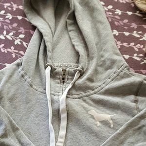 Grey PINK zip up. Worn hand full of times, still in good condition though. Only thing is a little bit of fading on the lettering on back of jacket