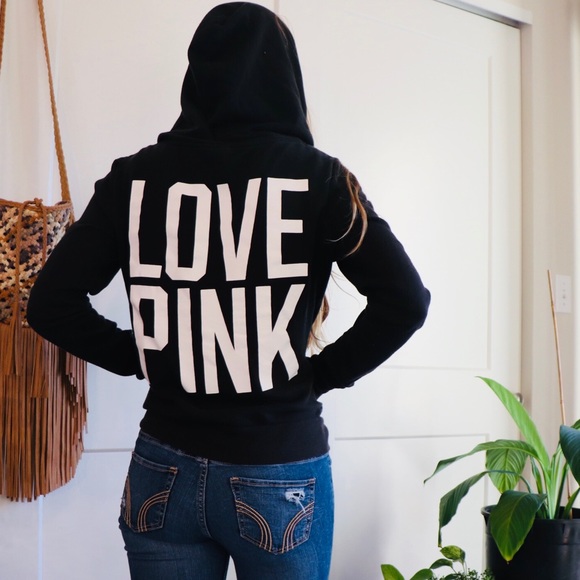 The only jacket by PINK that was plain black with white writing and just goes with everything! Cozy and easy to layer! Perfect with yoga pants.