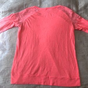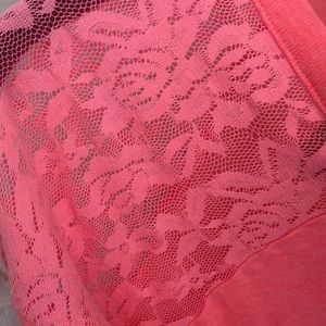 This hot pink shirt by PINK features lace shoulders and is in great condition. No rips, holes, stains, or any other visual defects.