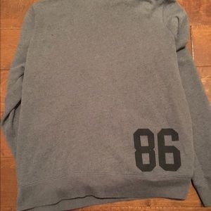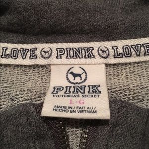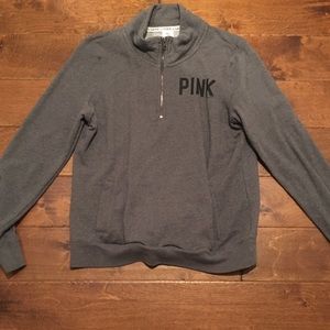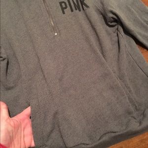 PINK dark gray pullover. Worn once. Has a hoody-type pocket across the front. Quarter zip