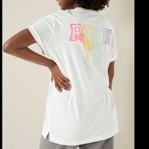 PINK rainbow tee oversized small NWOT