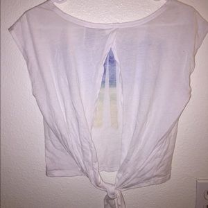 Open back with knot. Looks good with swim suit, bandeau, or bralette. Good condition. Material is 60% cotton 40% polyester.