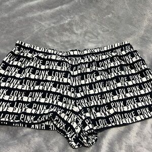 Beautiful LOVE PINK shorts. This shorts all super soft and stretchy and very comfy. They have a silver glitter PINK Doggy on the front. They’re size Small but can also fit a medium since they’re loose. Lace crop is not PINK it’s a Soma brand that I just match with it. Size Medium.