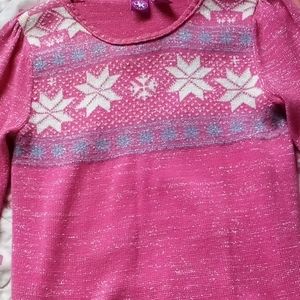 Super cute junior's pink sweater with sparkling stitching and pretty snowflake design on front it has been worn twice so it's in almost like new condition the colors are bright and vibrant no fading. It's a nice sweater to dress up or down. It fits a women's small but is sized as junior's large