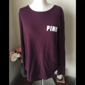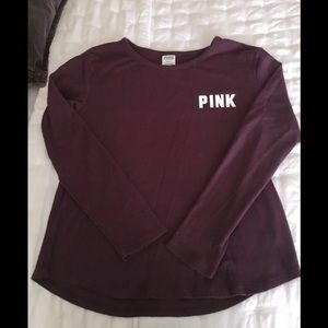 PINK stretch knit tee. Only worn a couple times. Excellent condition. More of a burgundy color