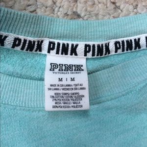 Good condition. Sleeves are not stained. The PINK logo on back and the one on front are a holographic color. Super comfy. Has a jersey like material down the sides.