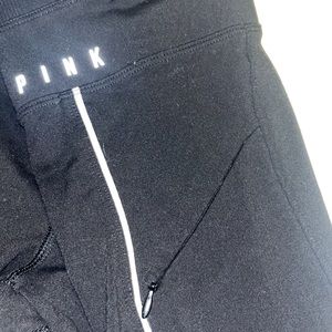 Jogger styled leggings with small Pink logo on waistband, side zipper pocket (left hip) and foiled / reflective PINK logo on back of right leg