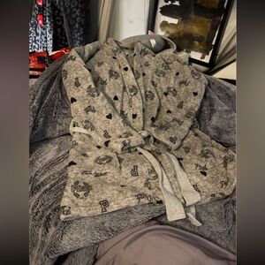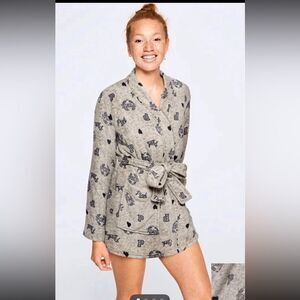 PINK victoria ’s Secret small all over mixed logo cozy short robe grey