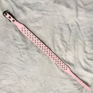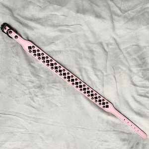 PINK BLACK STUDDED DOG COLLAR LEATHER W BITE RESISTANT RIVETS ADJUSTABLE BUCKLE LARGE 16.5”-18.5”