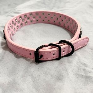 PINK BLACK STUDDED DOG COLLAR LEATHER W BITE RESISTANT RIVETS ADJUSTABLE BUCKLE