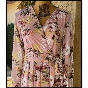 PINKBLUSH Pink Floral Chiffon Long Sleeve Pleated Maternity Maxi Dress Size S