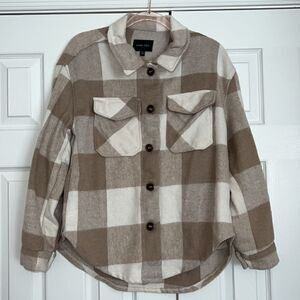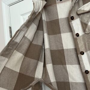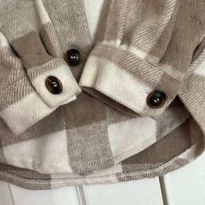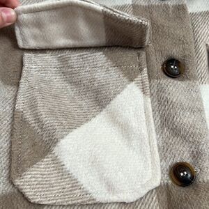 GREAT CONDITION! Worn a Few Times. Beige + White. Thick Knit. Collared Neckline. Button Front Closure. Two Front Pockets. Length 25’’