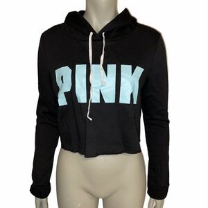 PINK Victoria's Secret Black Hoodie Cropped Sweatshirt - NWT