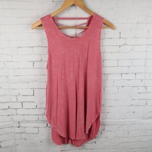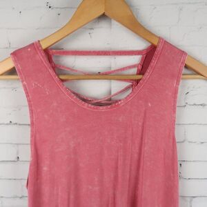 PINK DISTRESSED EXTRA LONG TANK TOP WITH CRISS CROSS BACK DETAIL SIZE MEDIUM
