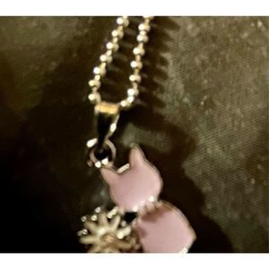 This cute pink kitty pendant features a white sapphire and is a sterling silver pendant that comes with a sterling silver chain. NWT #catne klace, #kittynecklace, #catpendant
