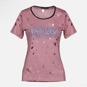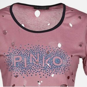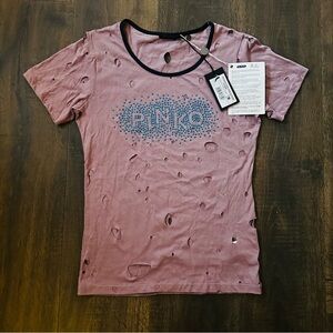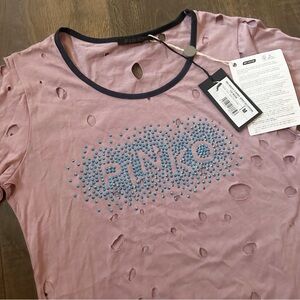 PINKO Distressed Big Holes Logo T-Shirt | NWT | Medium