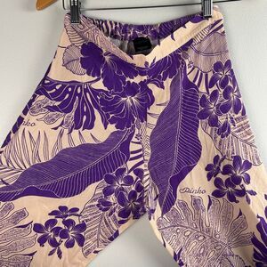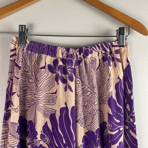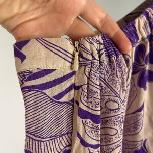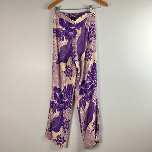 straight-leg pants, crepe, floral-print, no appliqués, mid rise, elasticized waist, relaxed fit, zipper fastening, without pockets, machine wash or dry clean, do not bleach, do not tumble dry