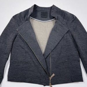 PINKO Jacket Womens Size 4 Gray Asymmetrical Full Zip Square Neck Wool Blend