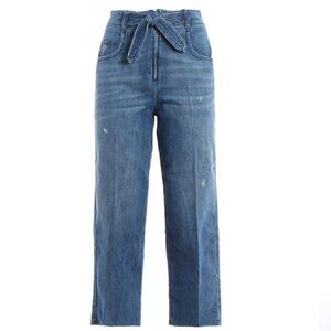 PINKO Jeans Morgan 28 High Rise Cropped Medium Wash Tie-Belt Italian Designer