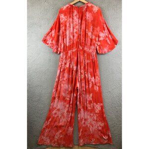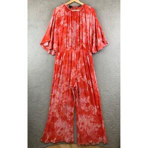 PINKO Jumpsuit Aquarius Tuta floral tropical wide leg flutter sleeve 10 pink red