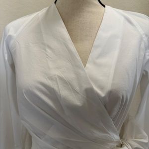 PINKO White Wrap Round Bow Detail, Long sleeves cuff button detail .